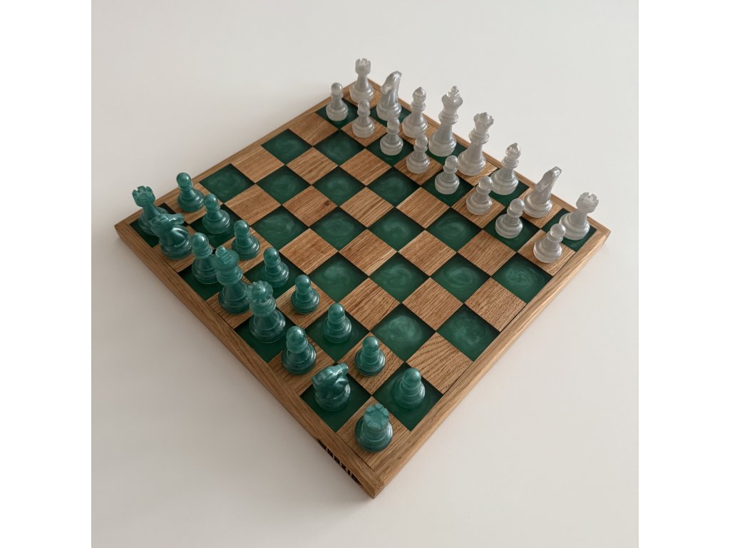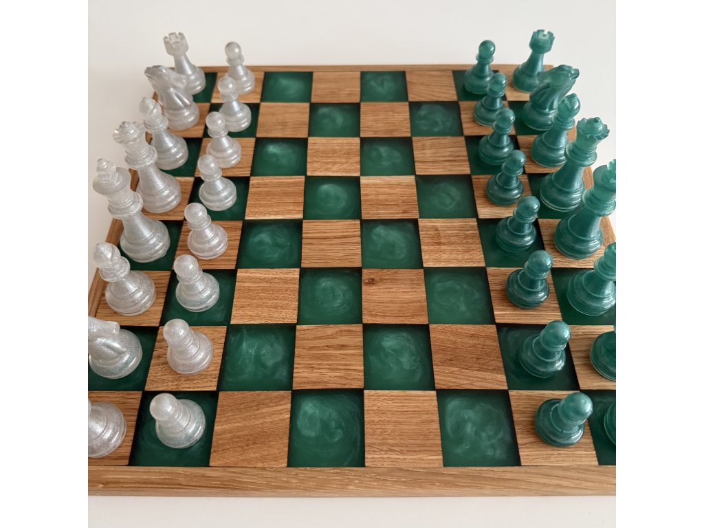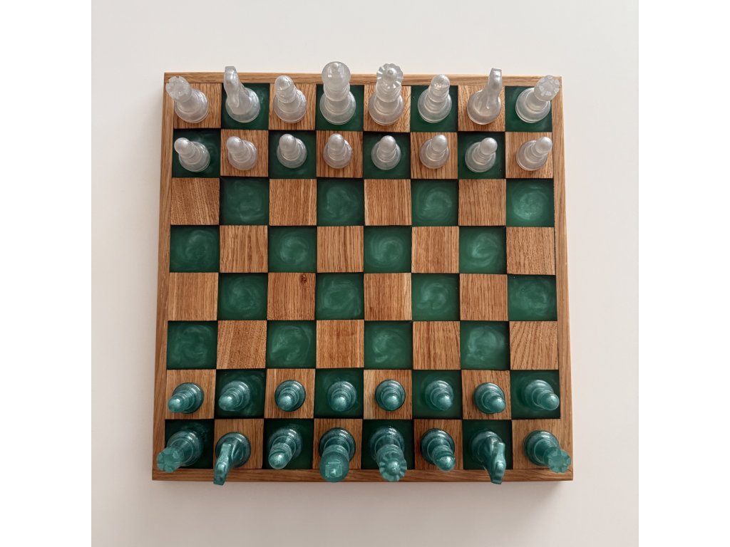 Elegantní šachovnice z masivního dubu v kombinaci s epoxidem, která spojuje tradiční řemeslo s moderním designem. Ideální jako stylový doplněk interiéru i originální dárek pro šachové nadšence.