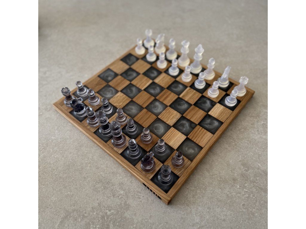 Elegantní šachovnice z masivního dubu v kombinaci s epoxidem, která spojuje tradiční řemeslo s moderním designem. Ideální jako stylový doplněk interiéru i originální dárek pro šachové nadšence.